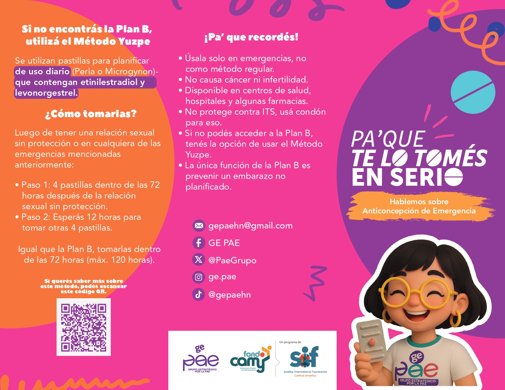 Trifolio informativo sobre la Pastilla Anticonceptiva de Emergencia (PAE) y el método yuzpe.